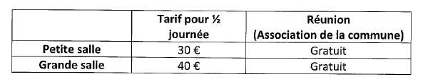 Vous trouverez ci-dessous les tarifs des salles en location mis à jour au 21 mai 2024